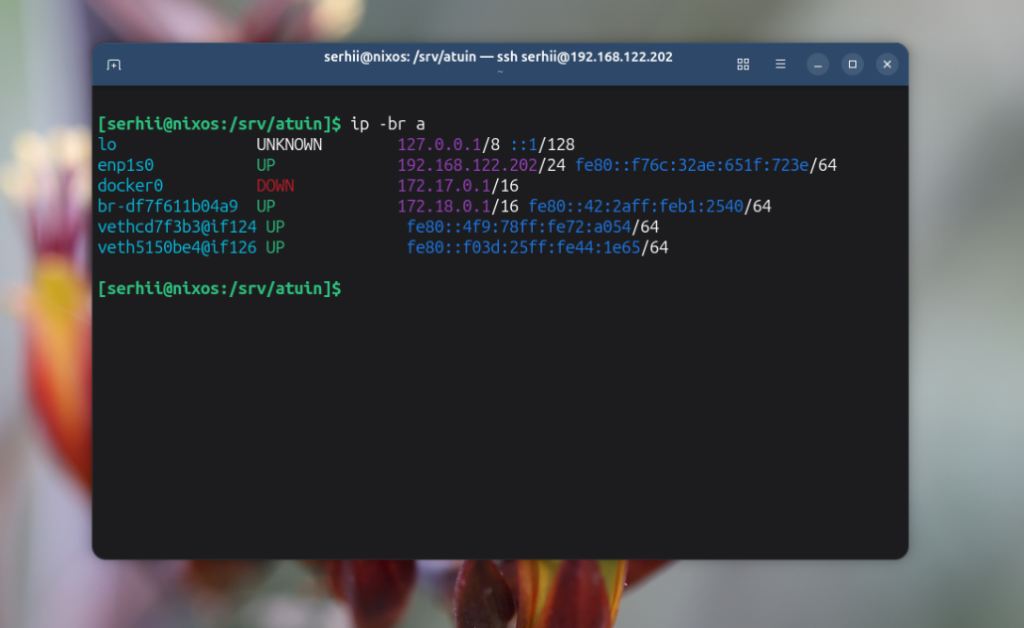 Если вы читали другие мои статьи, то знаете, что я предлагаю использовать Docker Compose. На данный момент это самый простой способ установки сервисов, поскольку вам достаточно взять готовую конфигурацию, выполнить несколько команд, и всё заработает. Atuin не исключение. Для работы программы нужен непосредственно сервис и база данных PostgreSQL. Чтобы всё это развернуть, можно использовать такой конфигурационный файл docker-compose: