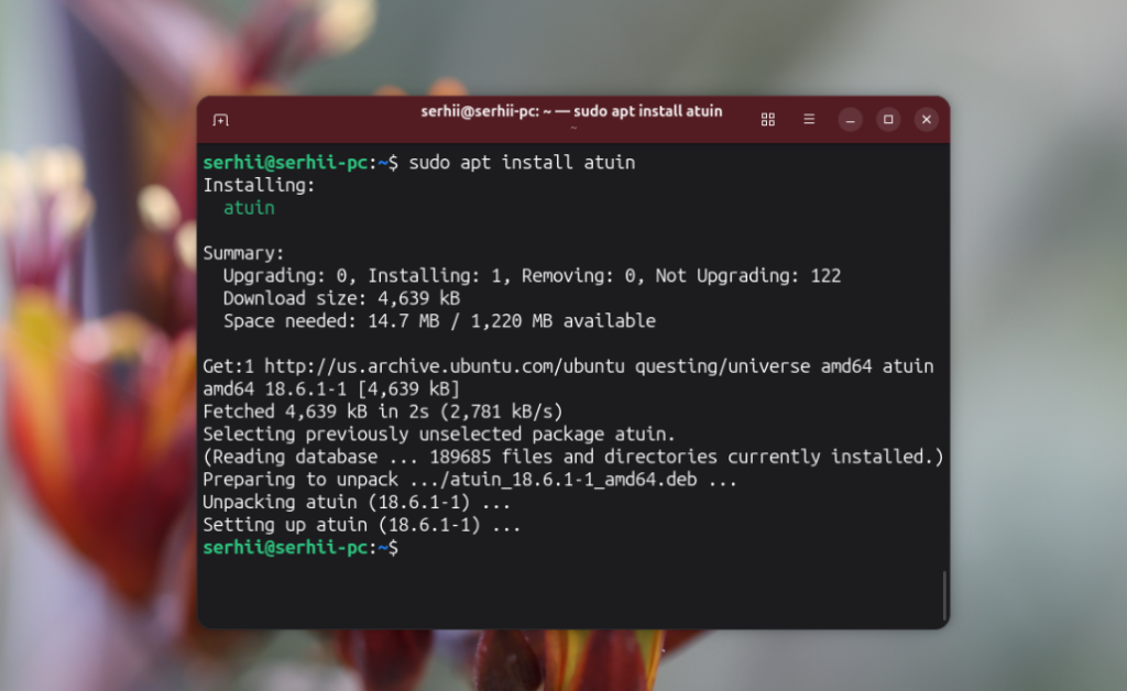 Если вы используете Ubuntu, то клиент Atuin можно установить из официальных репозиториев: