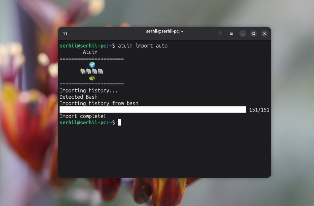 После этого нужно будет закрыть терминал и открыть его снова. Обратите также внимание, что для полноценной работы Atuin в Bash необходимо, чтобы был установлен и загружен скрипт ble.sh для Bash.