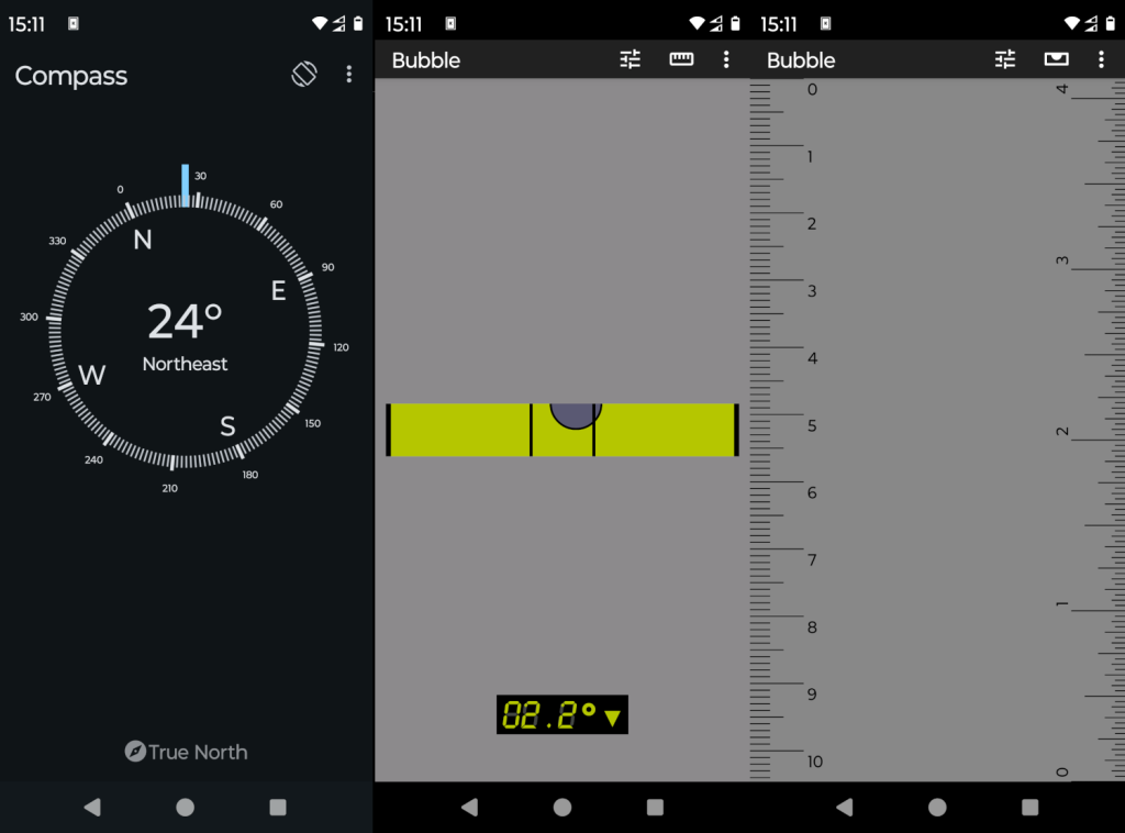 Эти две небольшие программы я объединил в один пункт. Первая - обычный компас, которая поможет определить где север. Вторая простой уровень, с помощью которой можно выровнять что-то или определить угол наклона поверхности. Оба приложения без рекламы и имеют открытый исходный код.