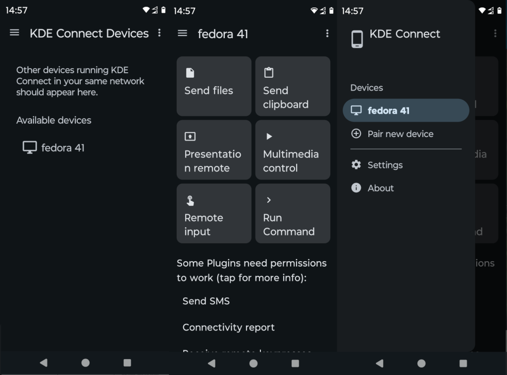 Если вам нужно не только передавать файлы, но и другие полезные функции интеграции Android c ПК, следует обратить внимание на KDE Connect. Здесь кроме передачи файлов есть синхронизация буфера обмена, управление воспроизведением медиа на ПК с телефона и наоборот, отображение уведомлений с телефона на ПК а также пауза воспроизведения медиа на ПК если на телефон поступает входящий звонок. Обычно програма работает с дистрибутивами Linux и окружением рабочего стола KDE, но на сайте есть также статья как настроить всё в GNOME.