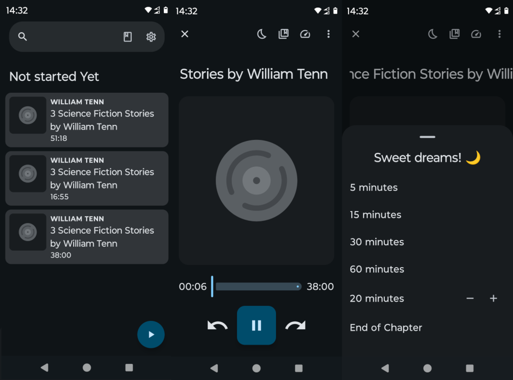 Если вы слушаете аудиокниги, сохранённые на телефоне, это приложение будет вам полезным. Оно очень простое и имеет понятный, современный интерфейс. Здесь отображается список ваших книг, а также по каждой книге приложение запоминает на каком месте вы остановились. Из дополнительных возможностей, можно изменить скорость воспроизведения и поставить таймер отключения перед сном.