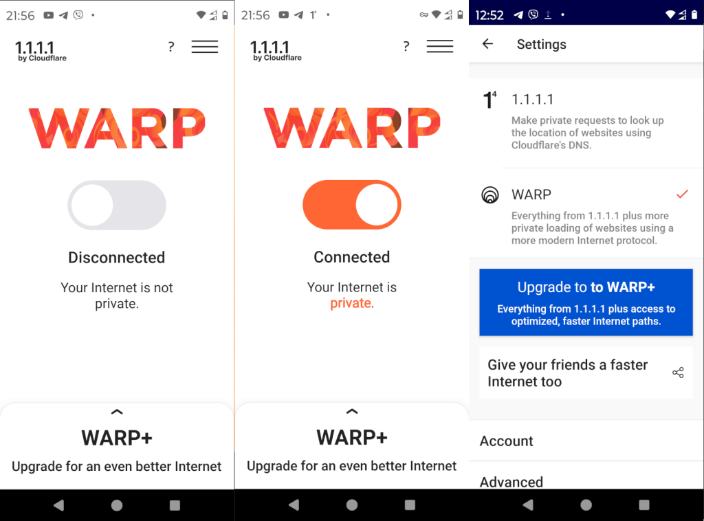 Это простое и бесплатное приложение, которое позволяет шифровать ваше соединение с сетью от Cloudflare. Оно работает как VPN, шифруя ваш трафик и не давая вашему провайдеру видеть что вы просматриваете. Однако здесь используется собственный протокол шифрования. Программа не требует регистрации, во время установки вы разрешаете приложению работать как VPN и всё. Дальше можно включать или отключать защиту сетевого подключения в самом приложении.