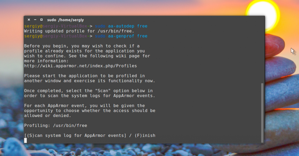 sudo aa-genprof free