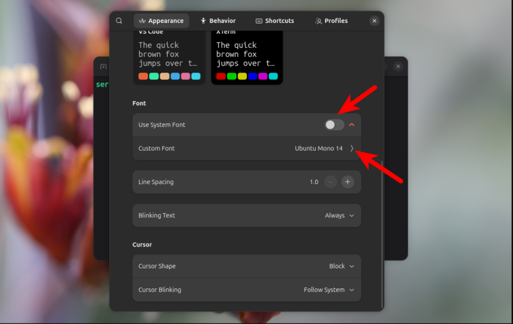 Чуть ниже можно изменить шрифт и его размер если отключить опцию Use system font: