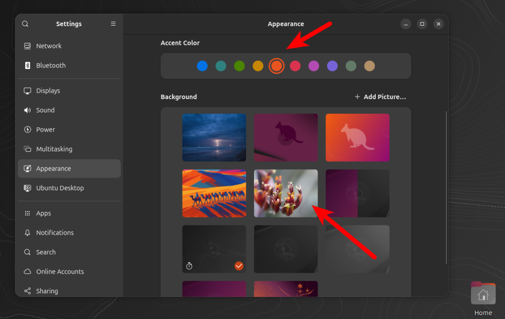 В разделе Accent Color можно изменить акцентный цвет, а ниже фон рабочего стола.