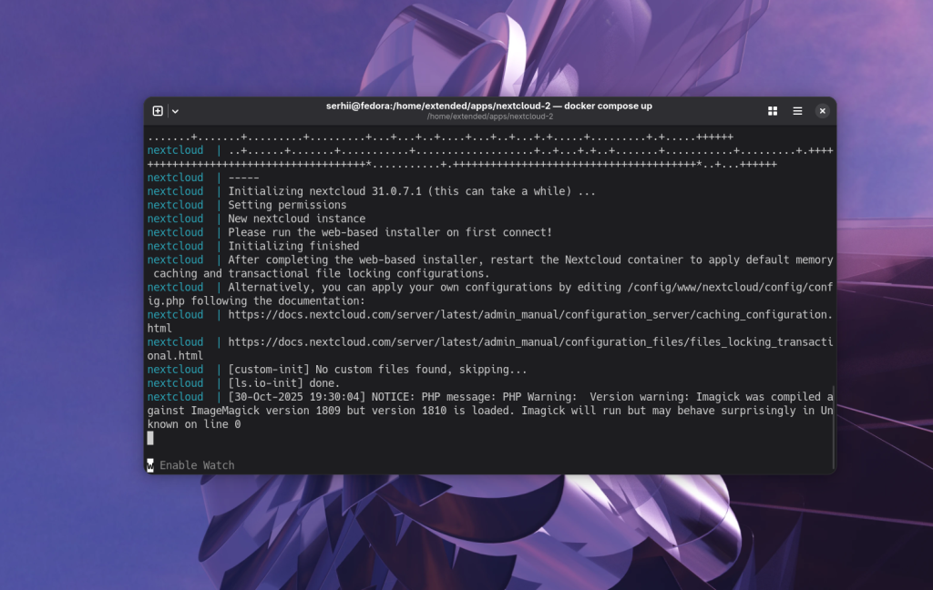 Это наиболее простой способ получить легко переносимую инсталляцию Nextcloud с поддержкой SSL, Cron и без необходимости настраивать всё вручную. На этом установка NextCloud Docker завершена.