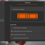 Внизу списку налаштувань можна змінити поведінку перемикання програм. За замовчуванням при натисканні Alt+Tab ви будете перемикати програми зі всіх робочих столів. Ви можете обрати Include apps from the current workspace only для того, щоб обиралися програми тільки з поточного робочого столу: